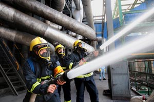 公司黨委書記、董事長張衛(wèi)民,黨委副書記、總經(jīng)理李清菊,副總經(jīng)理焦旺盛參加演練并提要求。健康安全環(huán)保部消防隊、熱電車間抽調(diào)精兵強將參加這次突發(fā)事件應(yīng)急預(yù)案實戰(zhàn)演練。